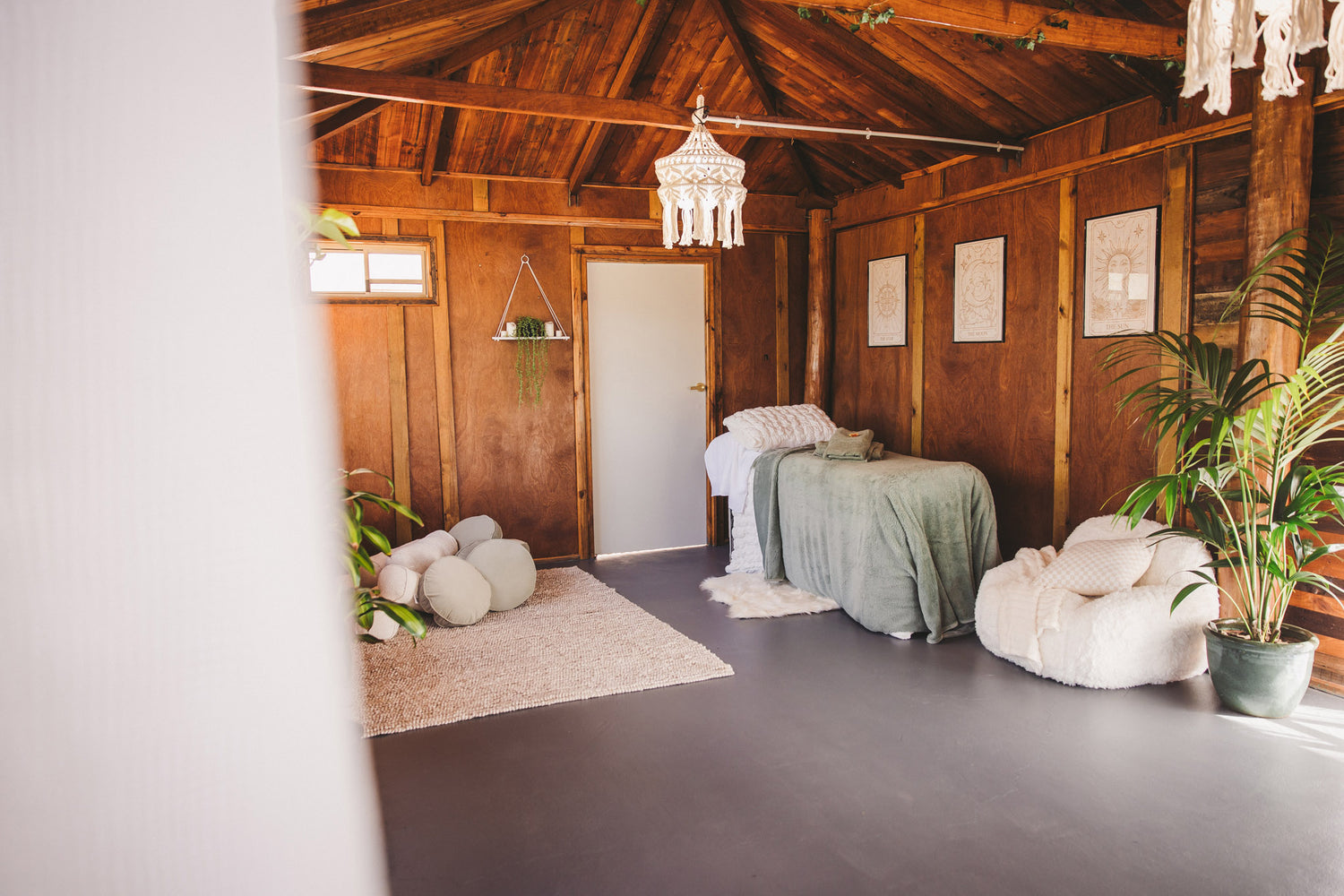 Our handcrafted wooden studio - warm timber, soft light, grounding textures and nature at every window - is designed for deep rest and emotional release. This is a space to let go and return home to yourself. -